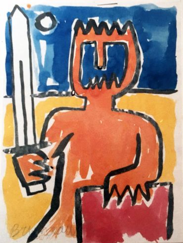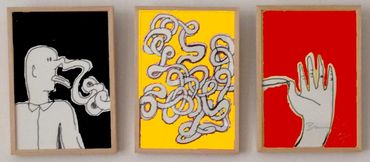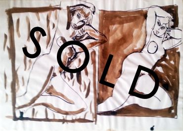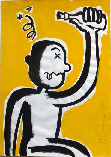 There are 3 options, but you choose the format that fit your needs related to the location where you intend to implement your Bruneau-Mosaic : upto 1 square meter (13 drawings), from one upto 4 square meter (10 drawings) and some starting from 4 square meter (3 drawings), finally designs to reproduce with marble in black and white (3 drawings). For the most demanding customer there's the offer to recreate a mosaic from the largest serigraph ever printed in Belgium of the unique Bruneau's 'MAD AS A HATTER (1991).